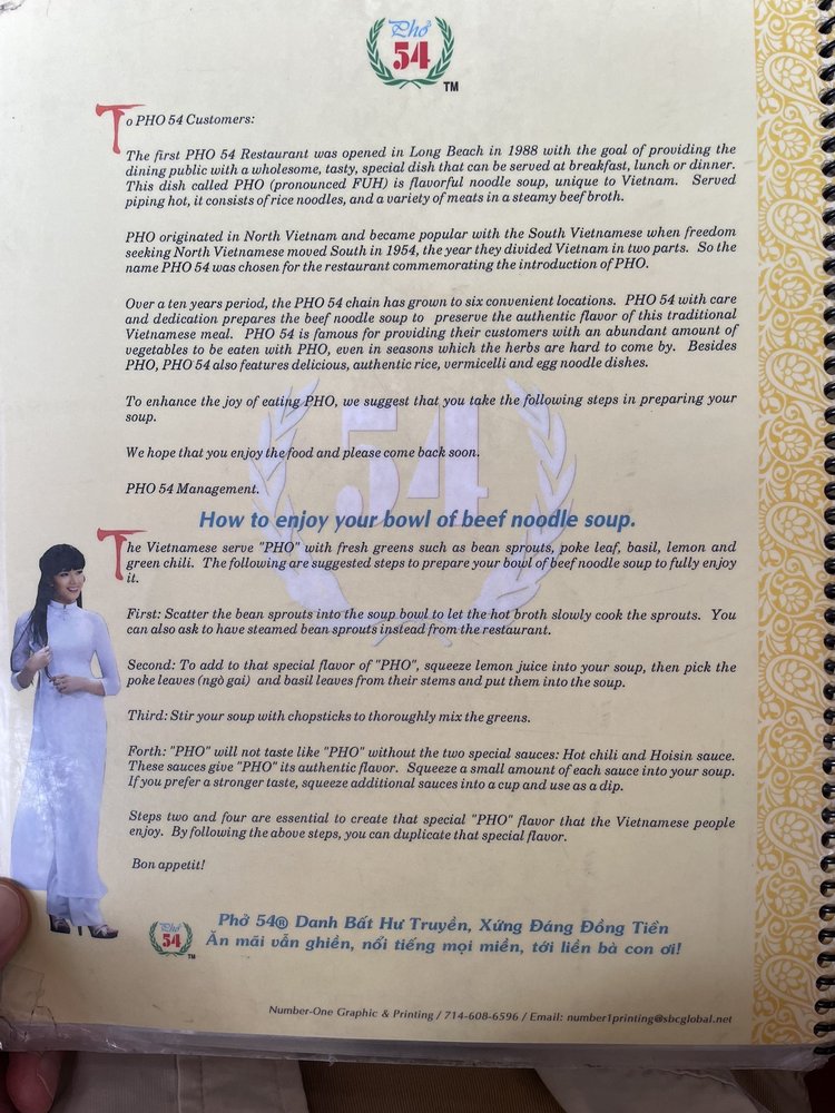 Pho 54 Menu (Update 2025)